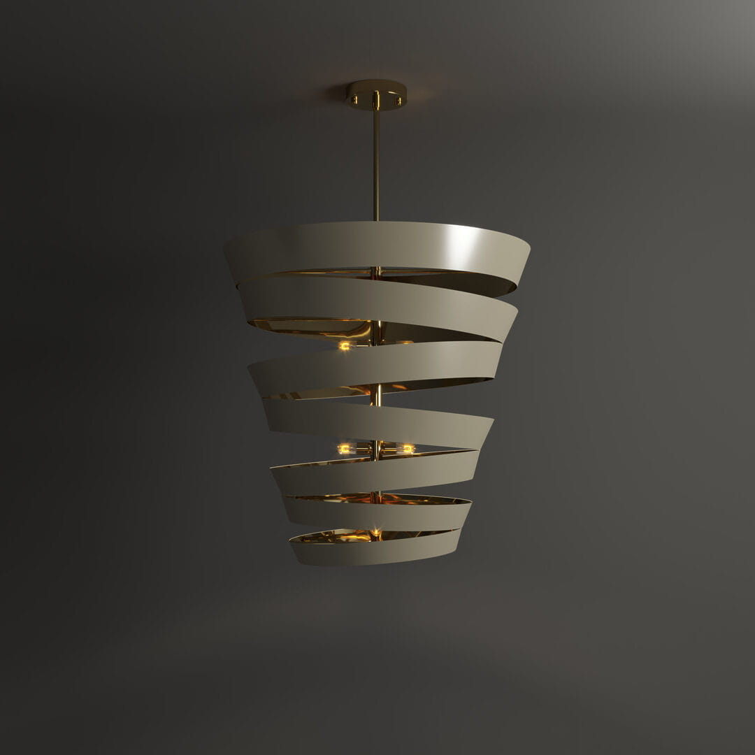 Ta wyjątkowa lampa wzbogaci twoją artystyczną przestrzeń i stanie się prawdziwą dekoracją wnętrza. Jak określają projektach, w lampie tej spirala kolorów i złota, lakierowanego i polerowanego mosiądzu, będzie emitować ciepłe światło w różnych losowych kierunkach, aby uzyskać wysublimowany efekt świetlny.