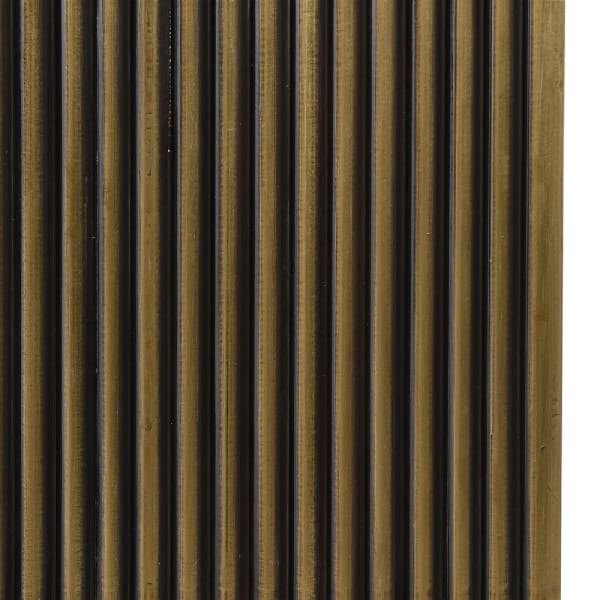 Ten nowoczesny i przyciągający wzrok barek na alkohole wyróżnia się oryginalnym designem oraz ponadczasową formą. Cała powierzchnia mebla została pokryta mosiężnymi płatami w wykończeniu antique brass, które podkreślają jego luksusowy charakter. Żłobiona faktura nadaje bryle masywności, a wysokie, smukłe nóżki optycznie odciążają konstrukcję, tworząc elegancki balans.