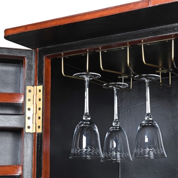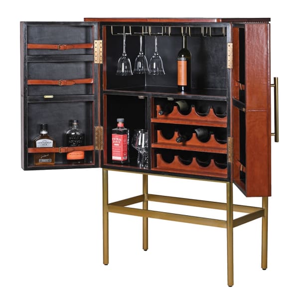 Luksusowy barek na alkohole Jaipur – skórzany minibar premium do salonu