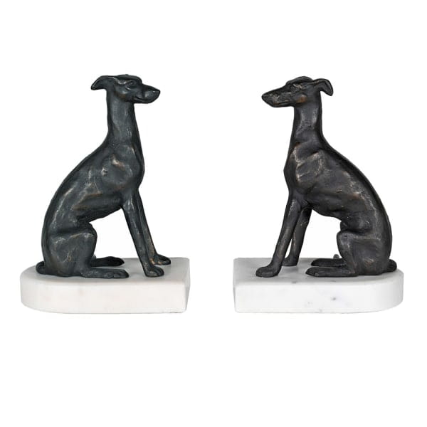 Podpórki do książek Dogs bookend 21 cm aluminium marmur greyhounds
