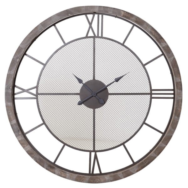 Zegar Chester Oversized 121 cm średnicy drewniana ramą metalowe detale