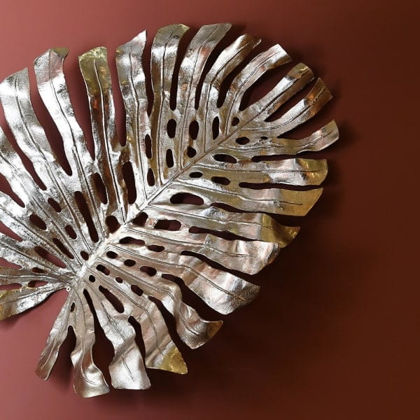 Złota dekoracja ścienna z aluminium – liść monstery w nowoczesnym wydaniu