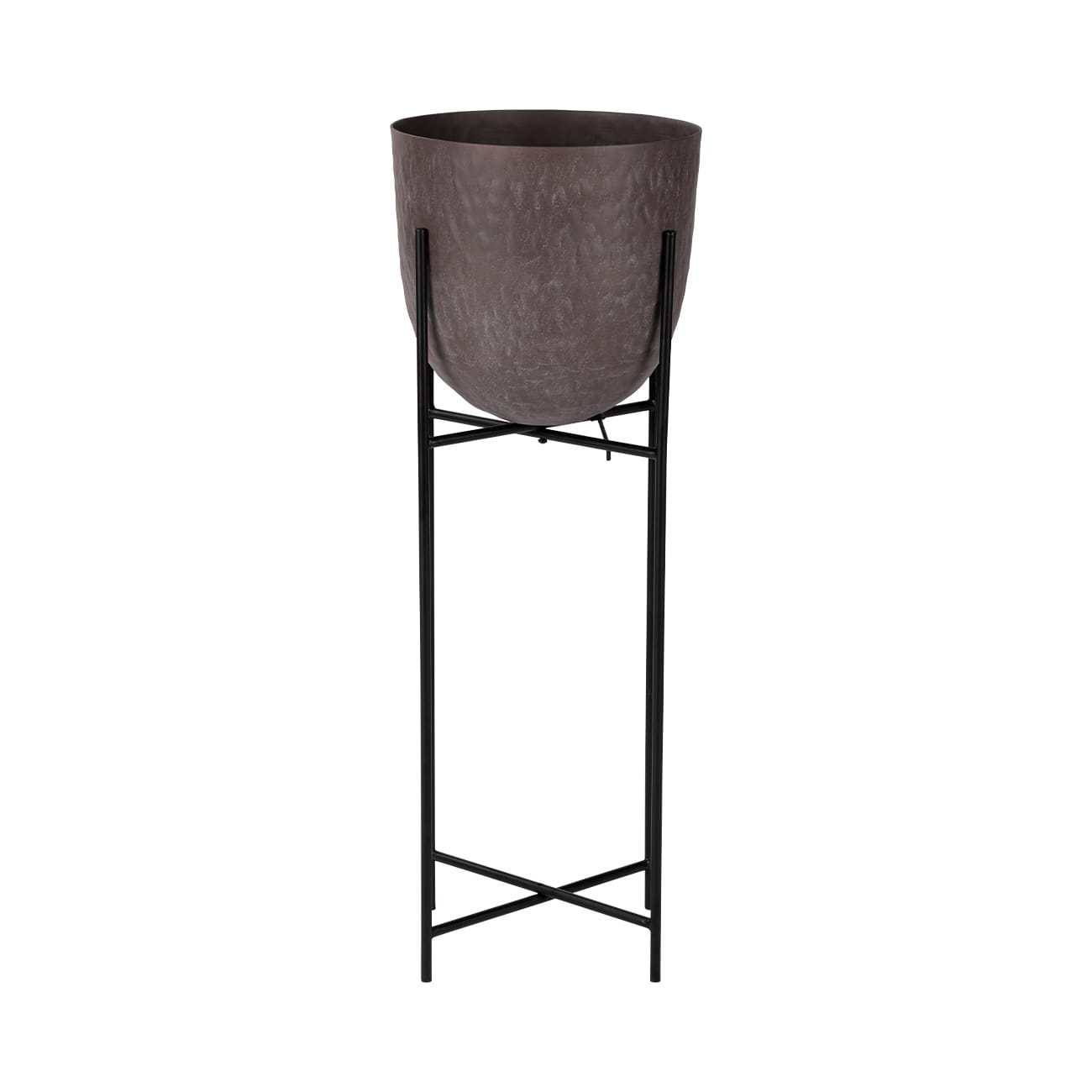Donica wykonana jest z aluminium i wykończona ręcznie aplikowaną powłoką typu stonewash w ciepłym, brązowym odcieniu. Delikatnie organiczna powierzchnia przyciąga wzrok i dodaje wnętrzu elegancji, doskonale wpisując się w nowoczesne, loftowe, nowojorskie oraz klasyczne aranżacje.