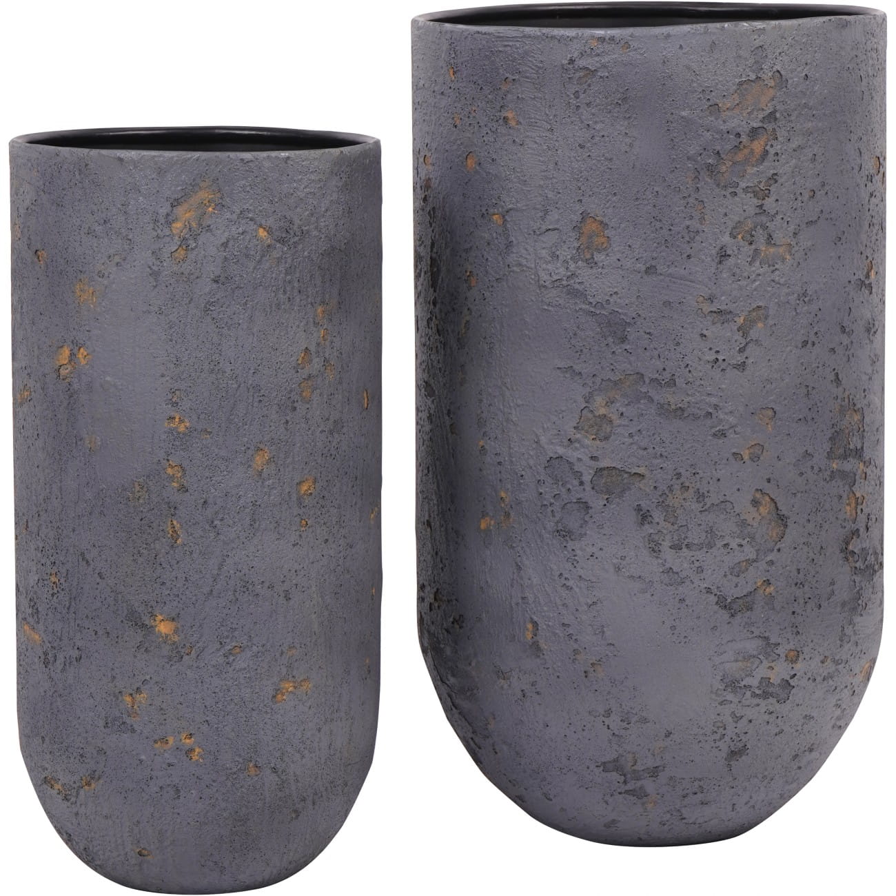 Zestaw dwóch donic Volcano to połączenie unikalnego designu i wyjątkowej trwałości. Każda donica posiada ręcznie naniesioną teksturę, która nadaje jej charakterystyczne, wyczuwalne wykończenie, przyciągając wzrok i dodając przestrzeni wyjątkowego charakteru. Duże donice wykonane są z solidnego żelaza, pokryte powłoką proszkową, co zapewnia im odporność na uszkodzenia i długowieczność. Dzięki braku otworów drenażowych, są idealne do użytku wewnętrznego, świetnie sprawdzą się w salonie, biurze czy na werandzie.