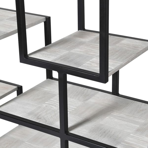 Pokrycie półek jasnym fornirem dębowym powoduje, że jest to wyjątkowo ekskluzywny element wystroju wnętrza. Ten oryginalny regał z żelazną ramą i licznymi półkami okaże się nie tylko praktycznym miejscem przechowywania, ale i olśniewającą dekoracją wnętrza. Całość prezentuje się niezwykle elegancko.