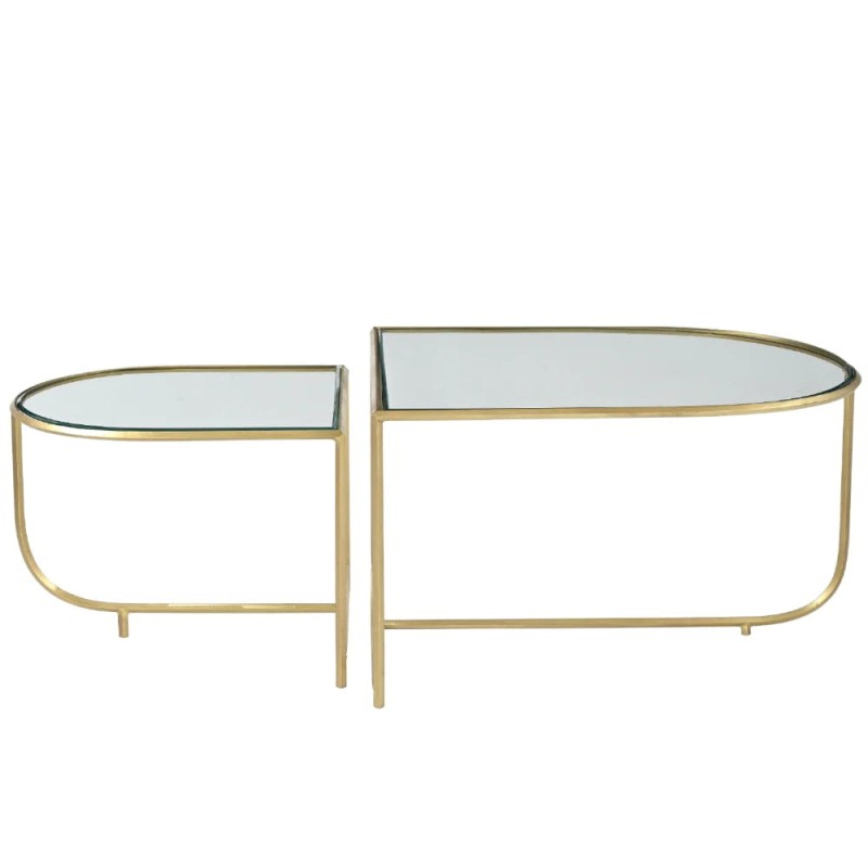 Stolik kawowy Larga dwa elementy szklany blat złota rama
