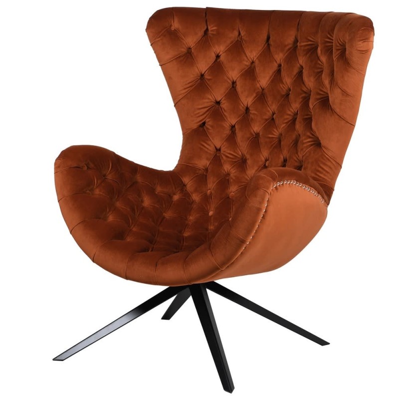 Ten luksusowy fotel tapicerowany doda Twoim wnętrzom blasku. Soczysta pomarańcz połączona z efektownymi detalami sprawiają, że obok tego mebla nie można przejść obojętnie.