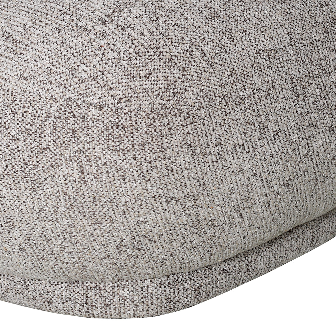 Tapicerka wykonana z miękkiej tkaniny szenilowej o melanżowym wykończeniu łączy ciepłe odcienie taupe z subtelną szarością. Dzięki temu fotel zyskuje wizualną miękkość, która łagodzi jego zdecydowaną bryłę i sprawia, że doskonale komponuje się z naturalnymi, stonowanymi paletami kolorystycznymi.