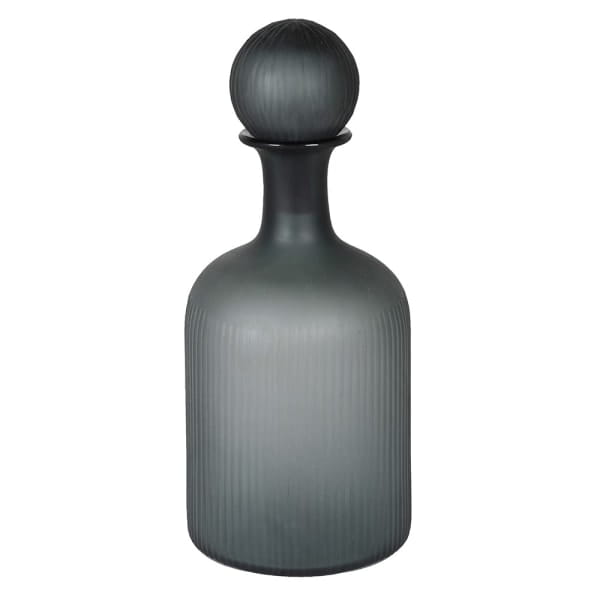 Oryginalna szklana karafka w kształcie smukłej butelki została wykonana z szarego szkła. Całość prezentuje się elegancko i stylowo dzięki zamknięciu w postaci kulistego, szklanego korka. Ta elegancka butelka staje się dzięki wysokości 41 cm eleganckim dodatkiem wystroju, który z powodzeniem możesz umieścić w dowolnym pomieszczeniu.