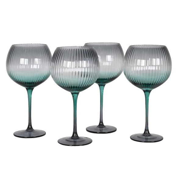 Zielone kieliszki do ginu – komplet 4 sztuk z ryflowanego szkła