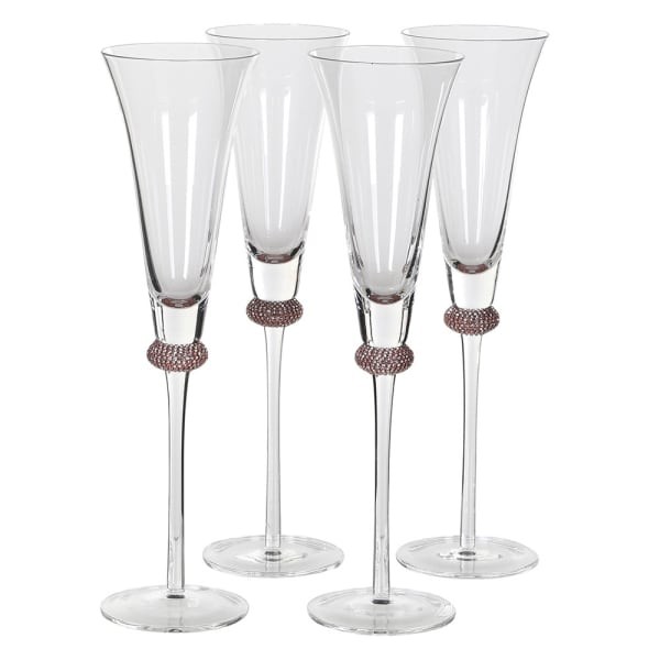 Komplet ośmiu eleganckich lampek do szampana Marylebone wykonanych z przezroczystego szkła z wykończeniem w odcieniu różowego złota. Smukła forma i dekoracyjny kolor sprawiają, że kieliszki pięknie prezentują się na stole podczas przyjęć, uroczystych kolacji, wesel, rocznic oraz spotkań w gronie bliskich.
