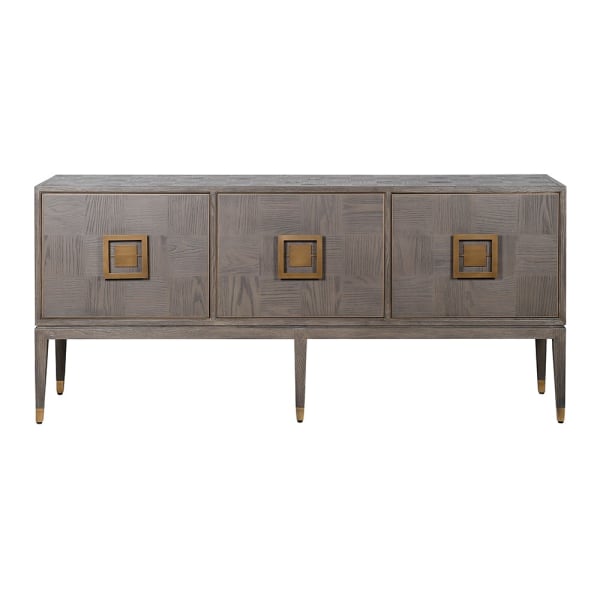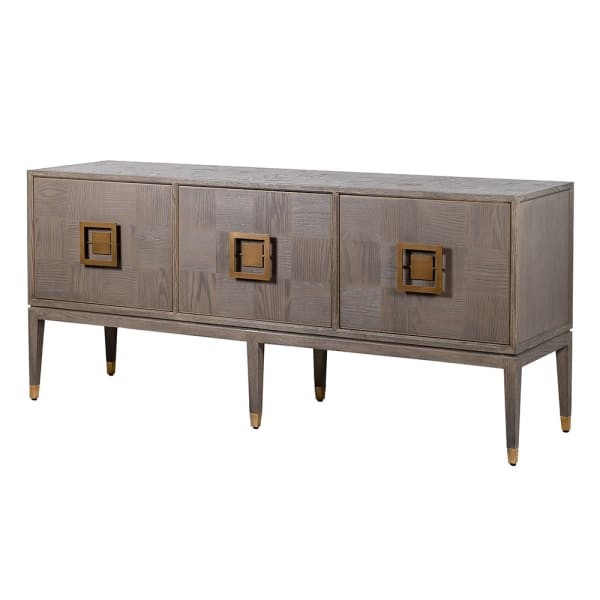 Komoda do salonu Camile Oak 193 cm szary dąb detale w odcieniu mosiądzu