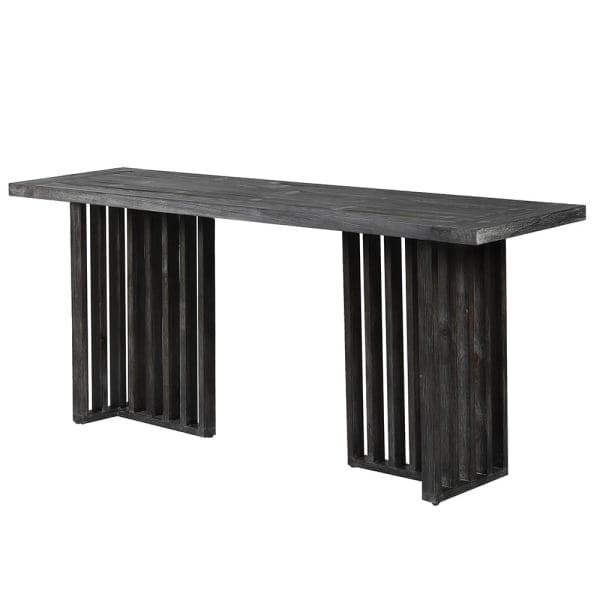 Wybierz czarną konsolę z drewna jodły, aby dodać wnętrzu elegancji, charakteru i funkcjonalności.