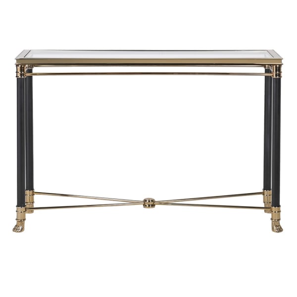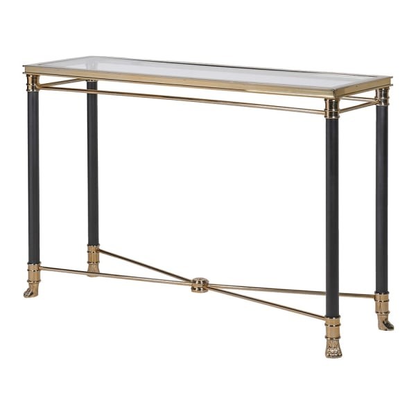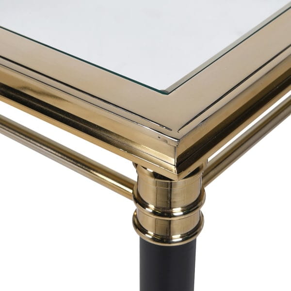 Konsola Foo 121 cm prostokątny szklany blat stal nierdzewna złoto i czerń