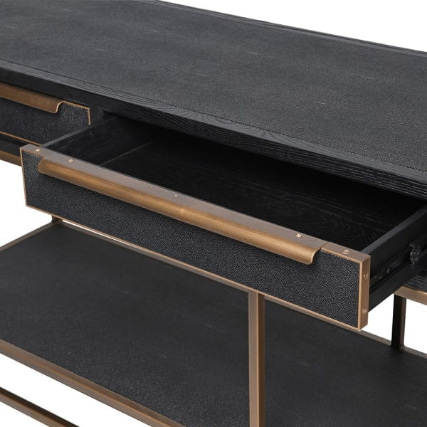 Konsola Primrose Black 200x78 cm czerń i złoto trzy szuflady
