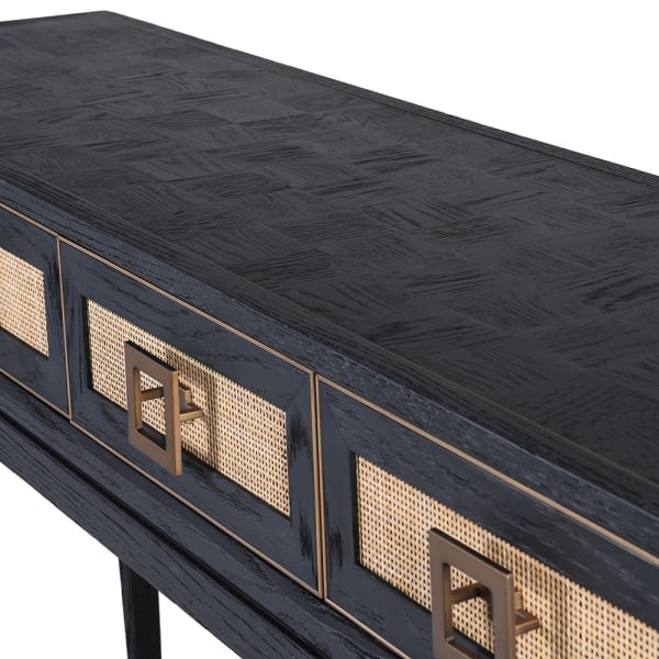 Konsola Zelten Black 160x91 cm cztery szuflady dąb rattan czarny stolik konsolowy