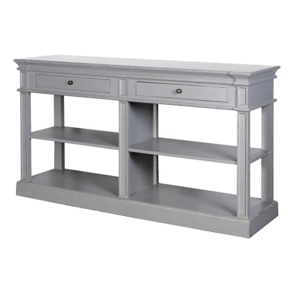 Funkcjonalna szara konsola z szufladami do salonu i przedpokoju
