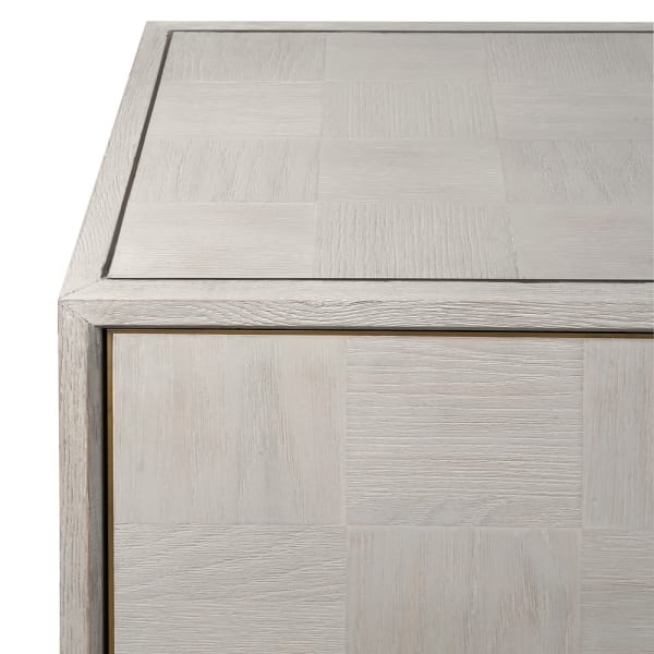 Wykonany z wysokiej jakości materiałów, kredens Primrose łączy w sobie minimalizm skandynawskiego stylu z nutą luksusu. Jasny odcień drewna optycznie rozświetla przestrzeń, a stylowe uchwyty i detale w kolorze miedzi stanowią wyjątkowy akcent dekoracyjny.