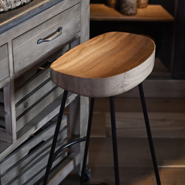 Naturalne drewno ociepla aranżację, a czarna podstawa dodaje jej wyrazistości i nowoczesnego charakteru. Dzięki temu krzesło barowe doskonale odnajduje się we wnętrzach w stylu modern farmhouse, loftowym, industrialnym i nowoczesnym. To mebel, który przyciąga uwagę prostotą i dobrze komponuje się z drewnem, kamieniem, bielą oraz czarnymi akcentami.