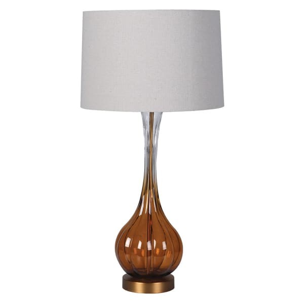Szklana lampa stołowa Amber Glass 80 cm z lnianym abażurem