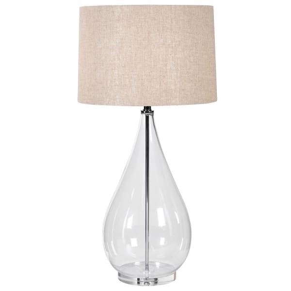 Oceń Duża lampa stołowa Boscobel Glass 90 cm szklana podstawa abażur 100% len i pomóż innym w wyborze.