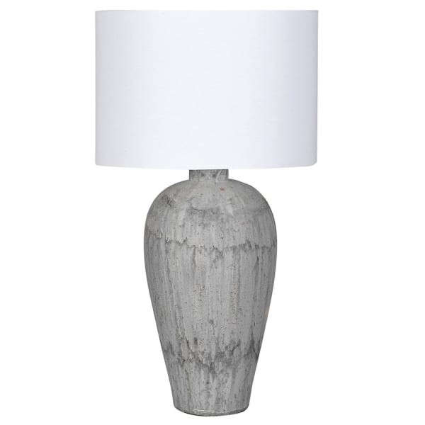 Duża lampa stołowa Burton Grey 83 cm terrakota z białym abażurem