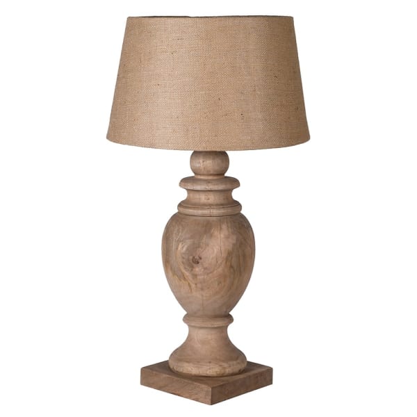 Niezwykle luksusowa, drewniana lampa stołowa z abażurem z juty, która zachwyci każdego. Wykonana z wysokiej jakości drewna mango, ta bardzo duża lampa stołowa stanie się Twoim nowym ulubionym elementem dekoracyjnym