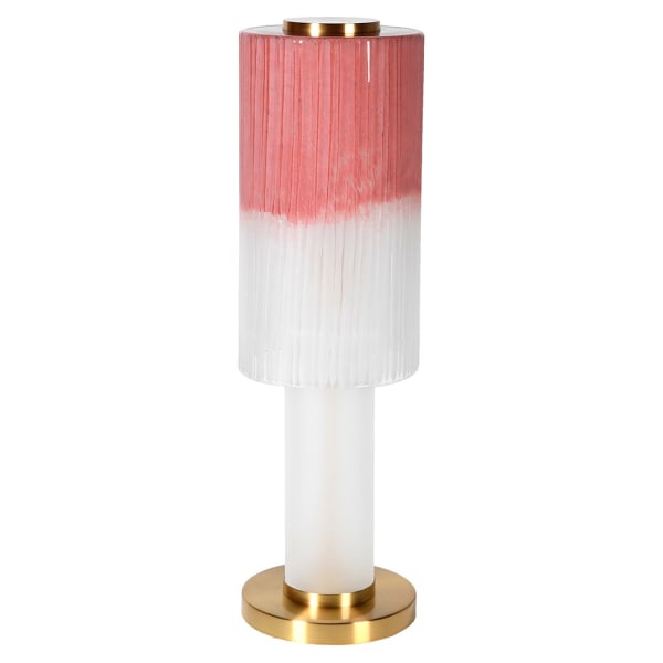 Luksusowa lampa stołowa z kolorowego szkła – różowo-biała, 66 cm, podstawa złota