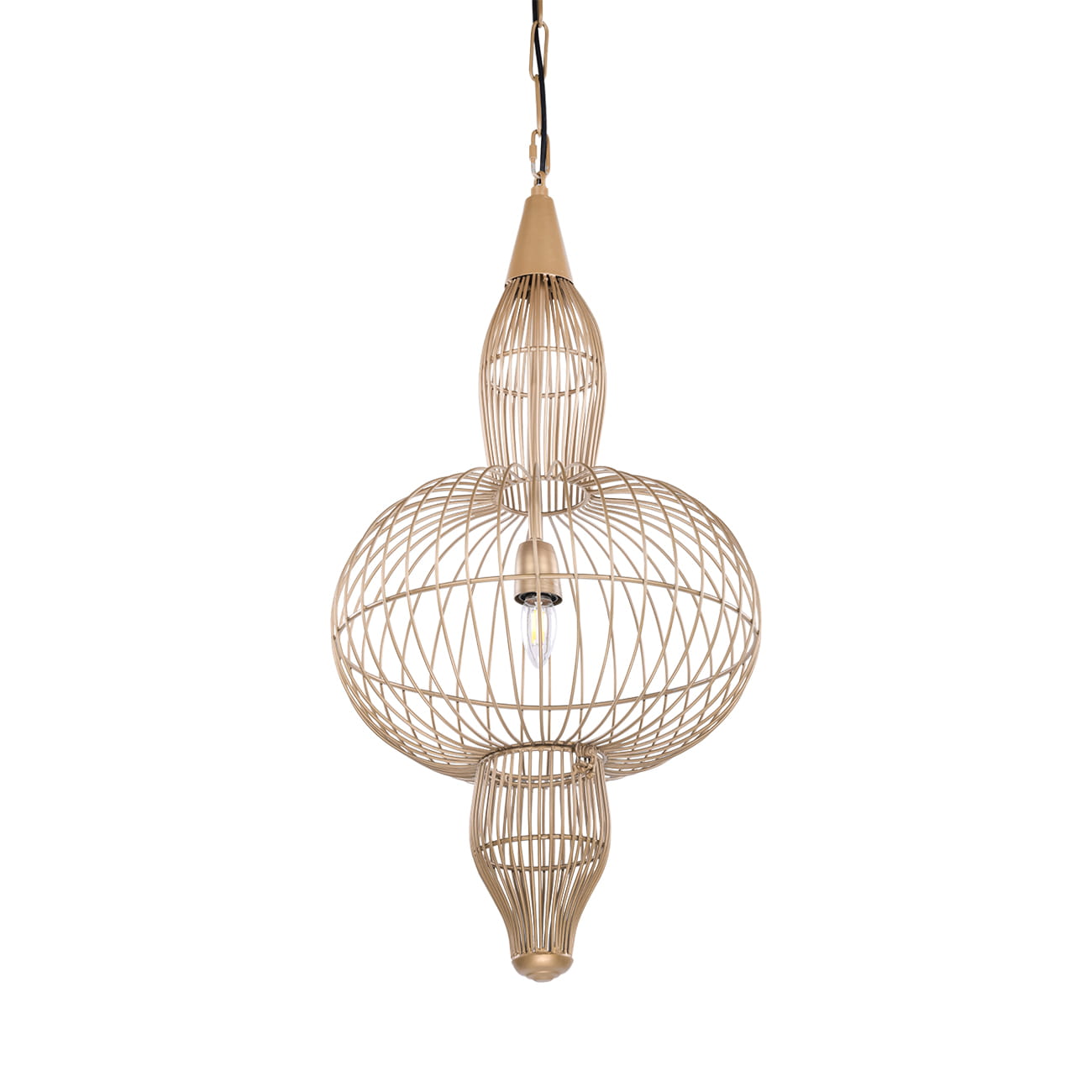 Lampa sufitowa Mira Orbit to elegancka i nowoczesna lampa wisząca w kolorze złota, zaprojektowana z myślą o wnętrzach, w których liczy się forma, proporcja i światło. Jej rzeźbiarska sylwetka oraz otwarta konstrukcja sprawiają, że stanowi efektowny, ale nienachalny akcent dekoracyjny.