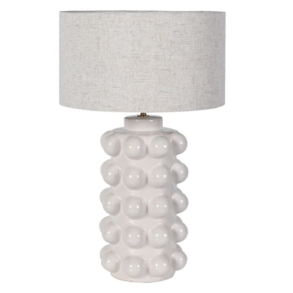 Biała lampa stołowa Bobble White 65 cm ceramiczna podstawa lniany abażur