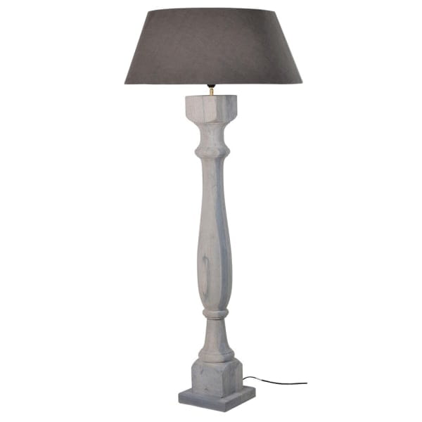 Lampa podłogowa Wooden Grey 158 cm drewno mango szary abażur