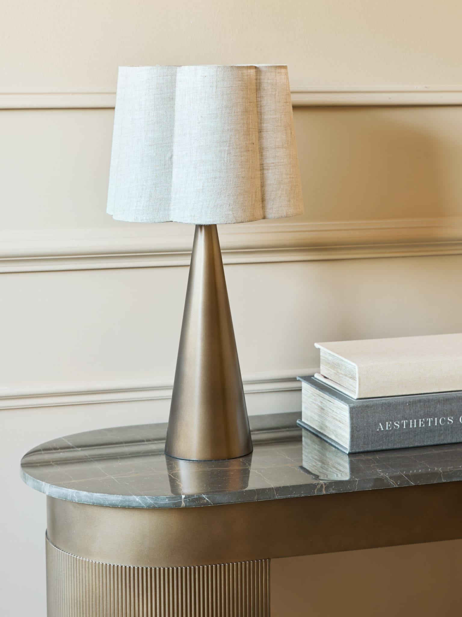 Lampa stołowa z abażurem Belgrave łączy dekoracyjny charakter z użytkową funkcją dodatkowego źródła światła. Zestawienie metalicznego wykończenia z naturalną strukturą lnu tworzy efekt wyważonej elegancji, który dobrze współgra zarówno z aranżacjami nowoczesnymi, jak i klasycznymi.