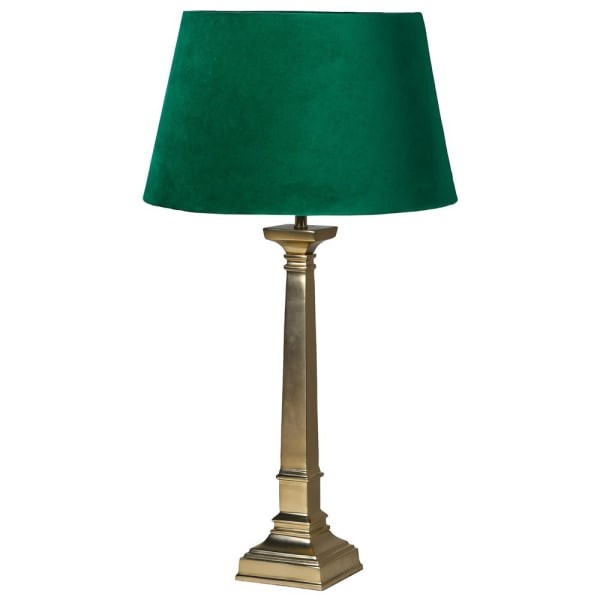 Podstawa tej lampy zaprojektowana została na kształt kolumny, wykończona w pięknym kolorze mosiężnego złota. Dopełnia ją niezwykle efektowny, zielony abażur z tkaniny velvet. Żywe kolory oraz duży rozmiar tej luksusowej lampy stołowej sprawiają, że nikt nie będzie mógł przejść obok niej obojętnie!