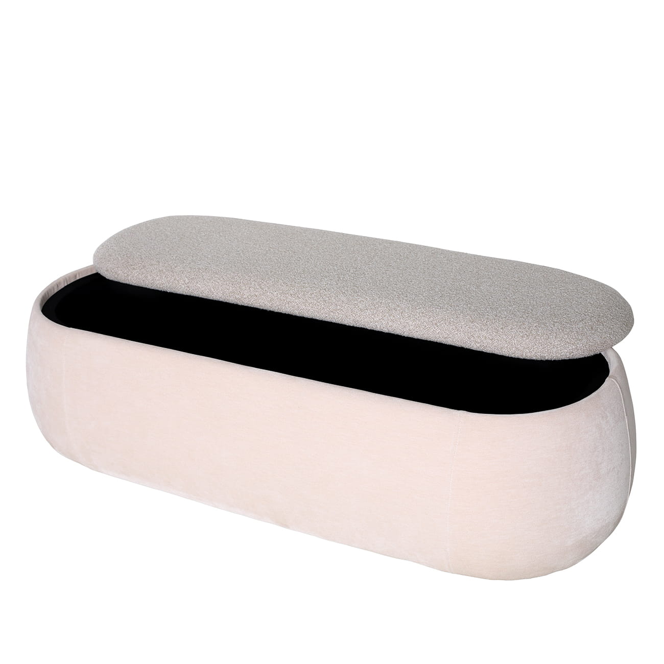 Pimlico – tapicerowana ławka ze schowkiem w beżowym welurze i boucle