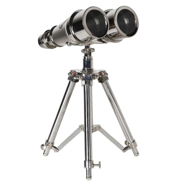 Lornetka osadzona została na stabilnym, trójnożnym statywie, dzięki czemu prezentuje się niezwykle efektownie jako dekoracja na biurko, komodę, konsolę lub regał. Jej design inspirowany klasycznymi akcesoriami podróżniczymi i marynistycznymi wprowadza do wnętrza atmosferę vintage, subtelną nutę przygody i elegancję charakterystyczną dla ekskluzywnych dodatków do domu.