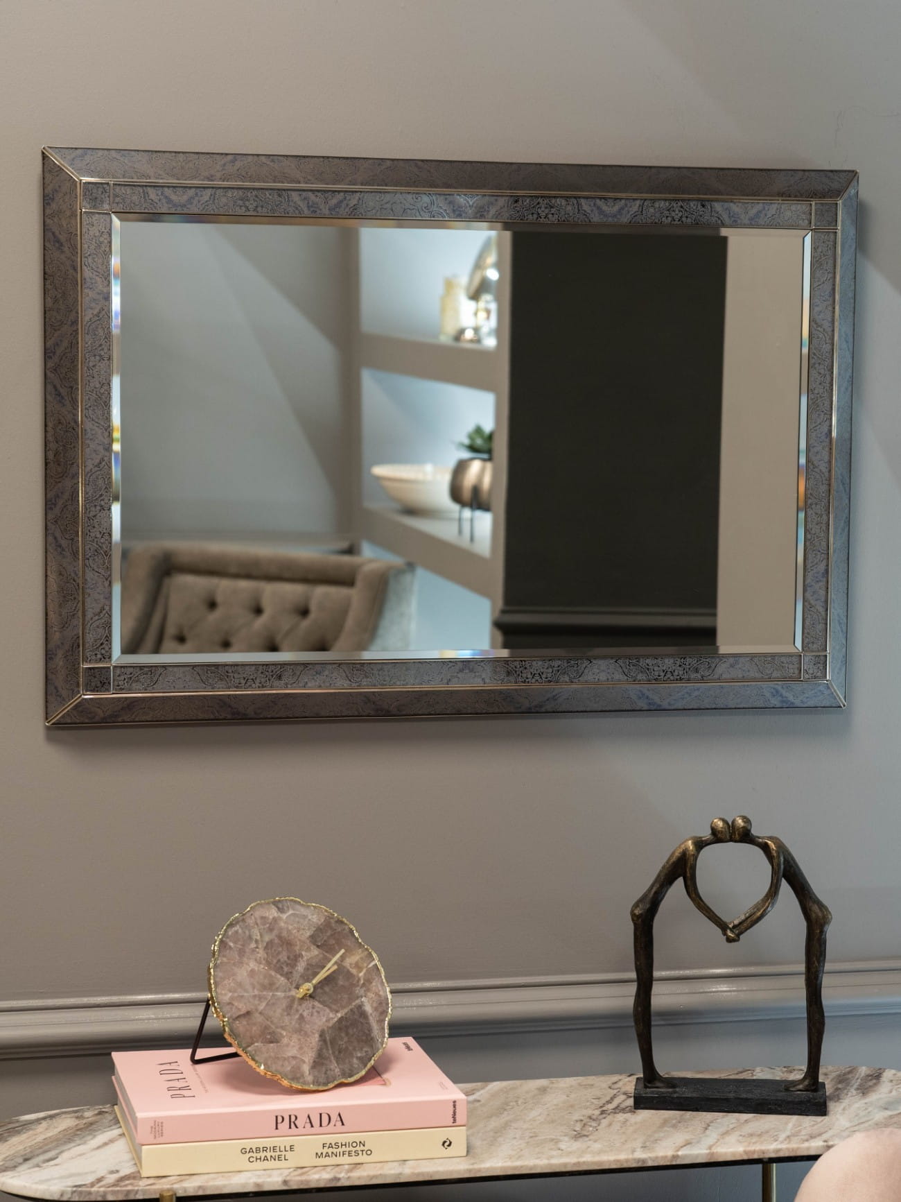 Lustro wiszące Mandala 60x90 cm – prostokątne, niebiesko-szare K&B London