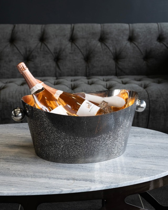 Pięknie wykonana, stalowa, bardzo duża misa cooler Enderby zachwyca wysoką jakością i ręcznym wykończeniem. Ta piękna misa może z powodzeniem pełnić funkcję ekskluzywnego coolera na butelki alkoholu (wina lub szampana), który jednocześnie stanie się ozdobą stołu.