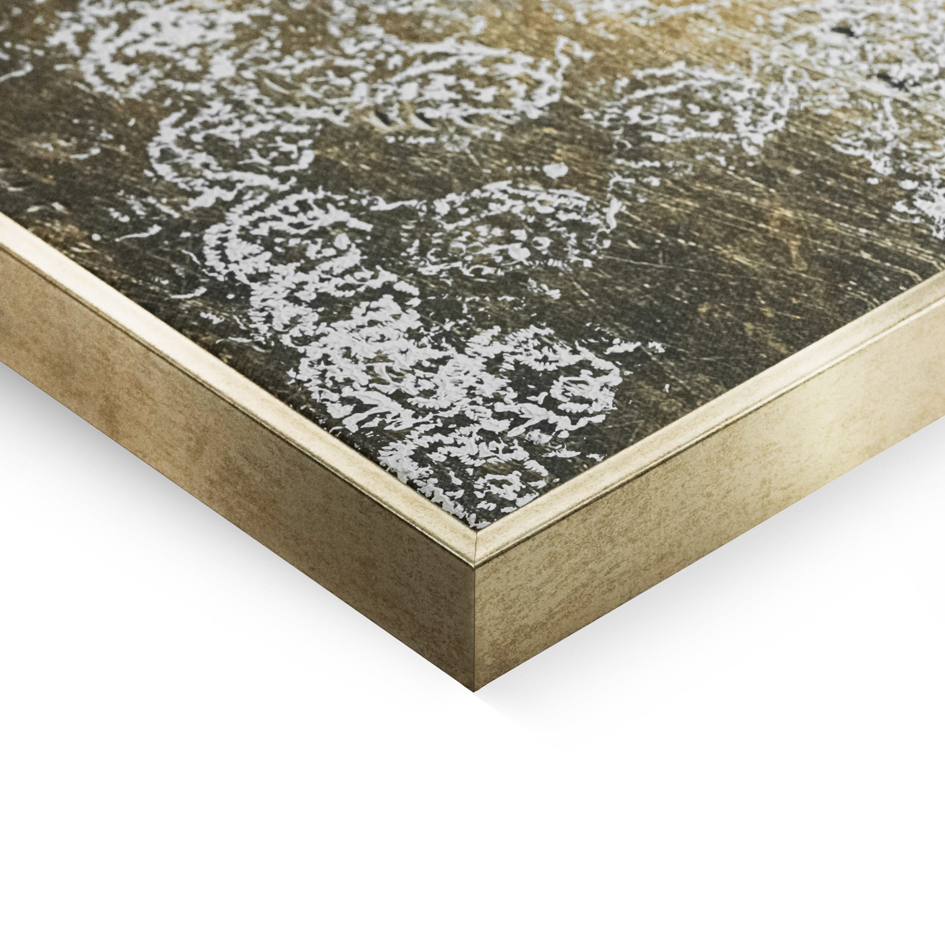 Po procesie drukowania, obraz jest dodatkowo ręcznie wykańczany warstwą białej i złotej, metalicznej farby. Ta delikatna, połyskująca farba dodaje kompozycji głębi i niezwykłego blasku, tworząc niesamowity efekt, który przyciąga wzrok i zachwyca detalami. Każde pociągnięcie pędzla nadaje mu unikalny charakter, czyniąc każdy egzemplarz niepowtarzalnym. Dodatkowo, ten piękny obraz do salonu wyposażono w złotą ramę.