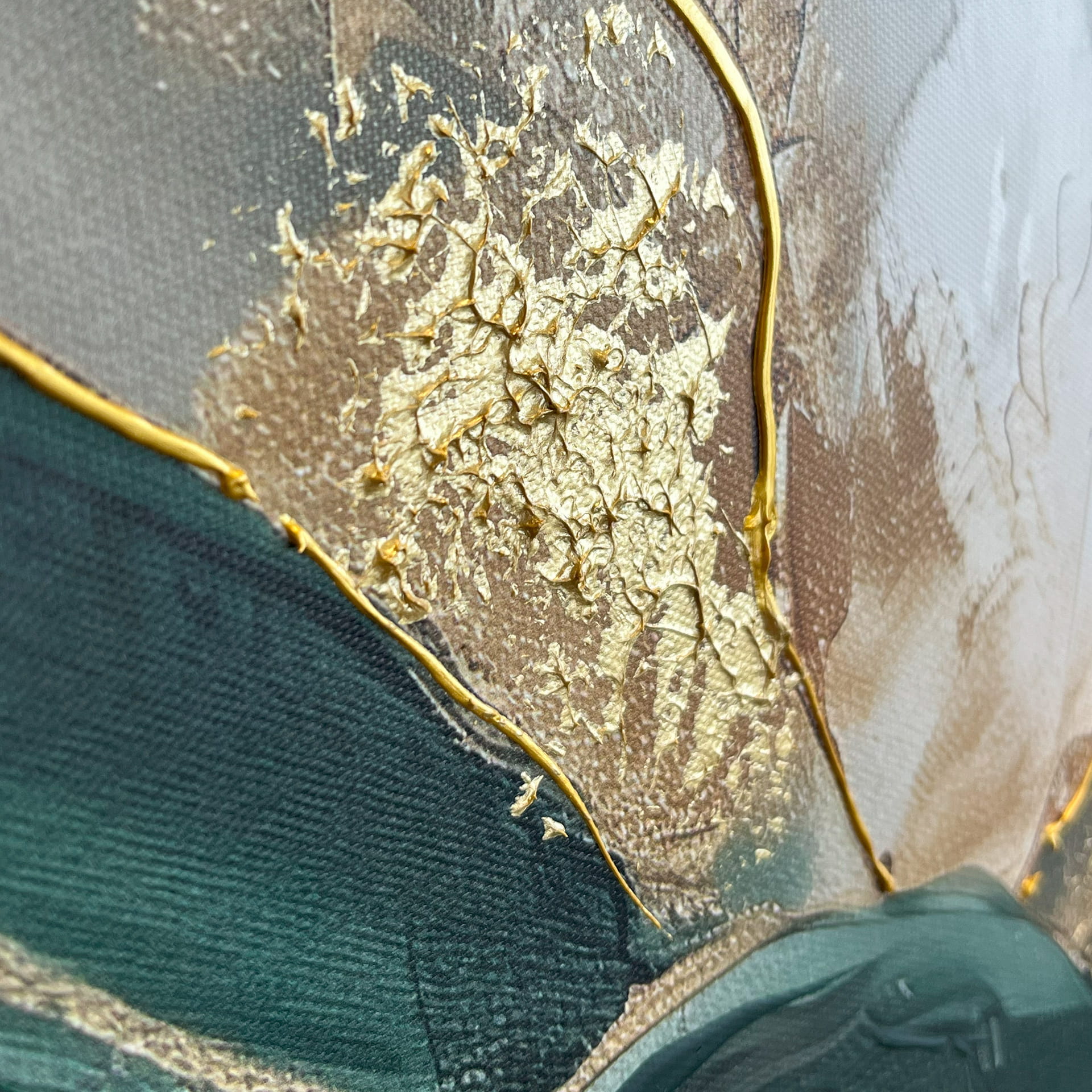 Odkryj luksusowe dekoracje ścienne w postaci efektownych i przyciągających wzrok obrazów! Obraz do salonu w odcieniach zieleni i złota, ręcznie dekorowany, będzie nowoczesnym dodatkiem wystroju.