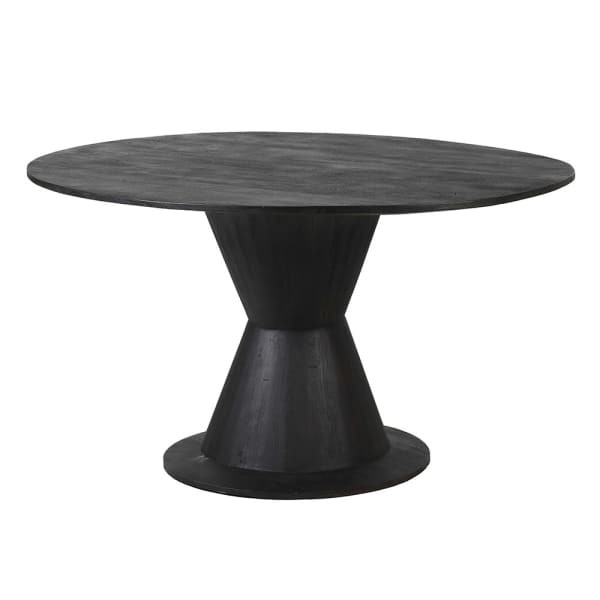 Stół do jadalni drewniany Bardem Black 150x118 cm owalny akacja duży stół czarny na jednej nodze
