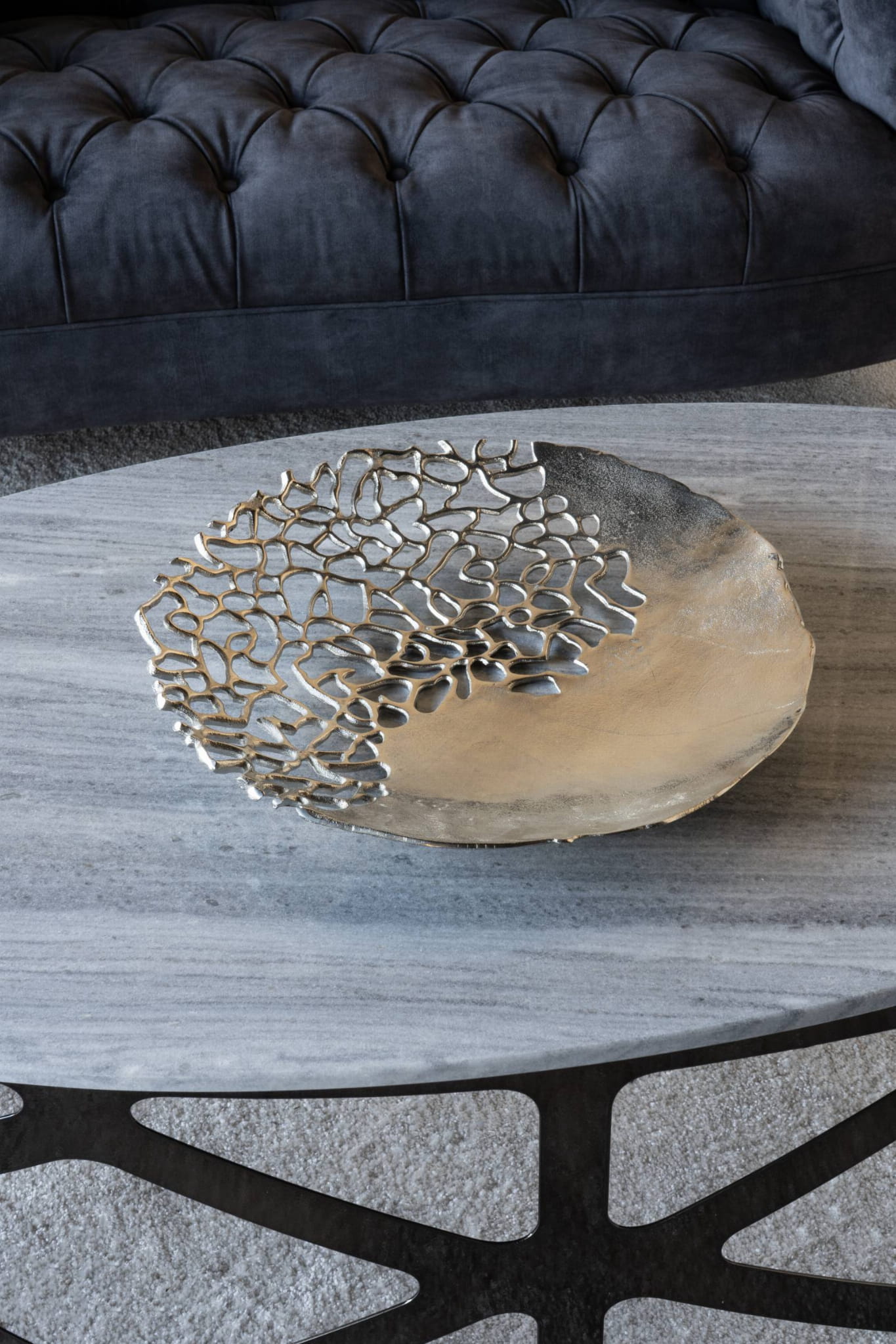 Srebrna patera dekoracyjna Chelsea – designerska ozdoba stołu do salonu i jadalni