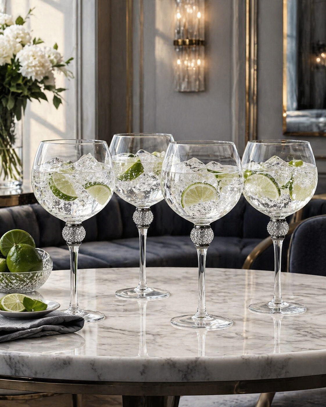 Kieliszki do ginu Boscobel łączą praktyczne zastosowanie z dekoracyjnym wyglądem. Ich srebrne wykończenie dobrze pasuje do aranżacji glamour, modern classic oraz eleganckich nakryć stołu. Sprawdzą się podczas domowych przyjęć, uroczystości, wieczorów z przyjaciółmi oraz jako efektowny element wyposażenia barku.