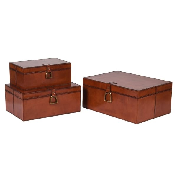 Komplet trzech pudełek Boscobel naturalna brązowa skóra pudełka do przechowywania