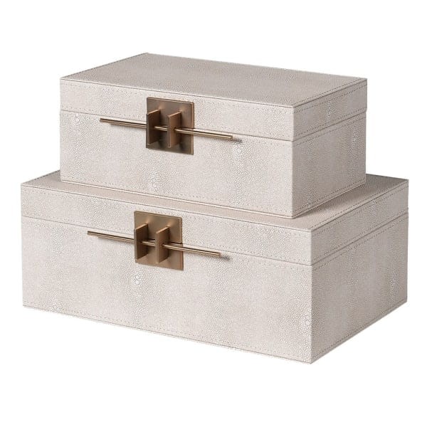 Komplet dwóch pudełek Telcon Ivory kremowa sztuczna skóra złote detale