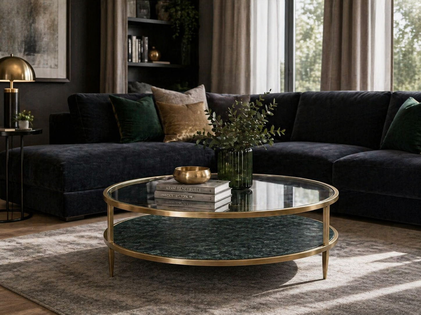 Luksusowy stolik kawowy z marmurową półką – duży, okrągły stolik do eleganckiego salonu