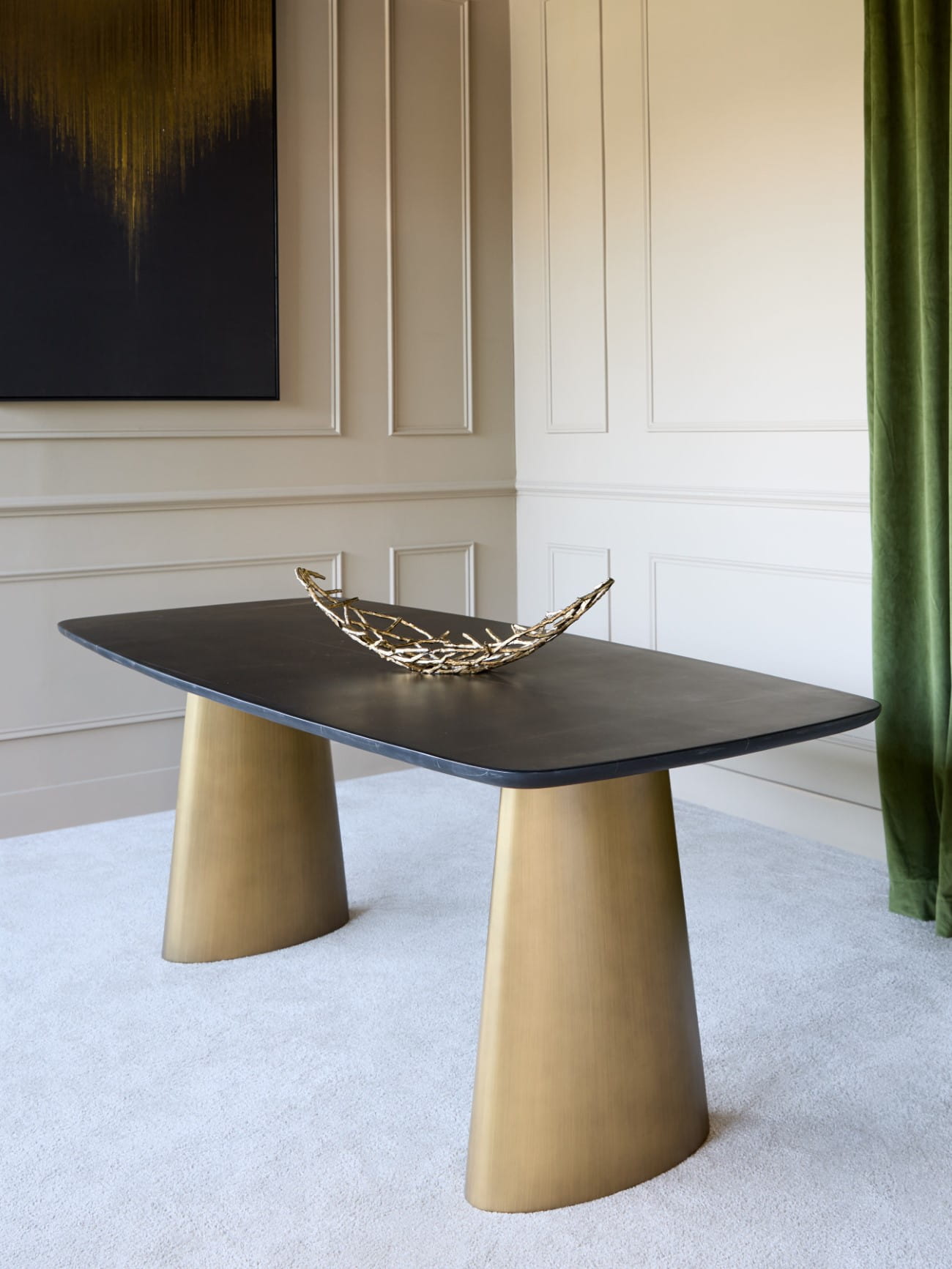 Stół do jadalni Belgrave 200x90 cm czarny marmur nogi w kolorze mosiądzu