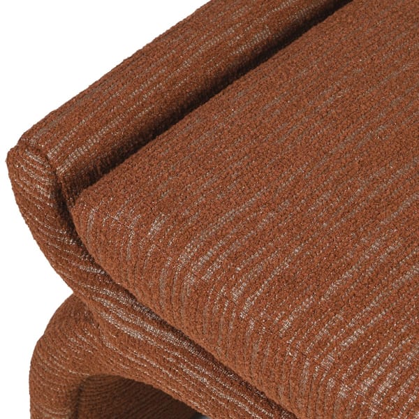 Ekskluzywny stołek do toaletki wyróżniający się oryginalnym, łukowym kształtem oraz pięknym wykończeniem będzie idealnym dodatkiem do wnętrza salonu, sypialni lub przedpokoju. Pomarańczowy mebel o oryginalnej formie pokryty został wysokiej jakości tkaniną (100% poliester).