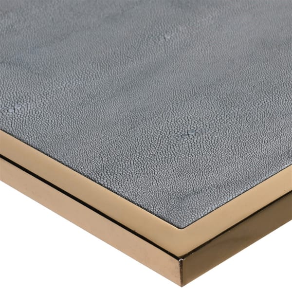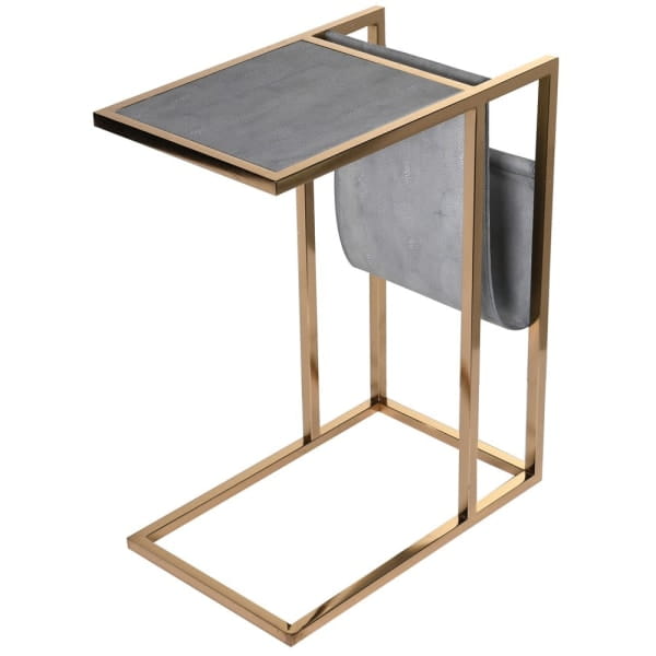 Stolik boczny Enderby 49x61 cm złota rama szagryn w kolorze szarym wieszak na czasopisma