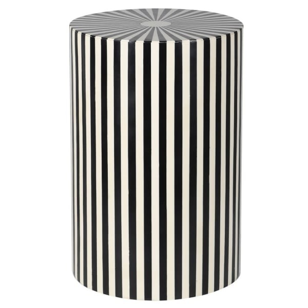 Stolik boczny Kinnerton 46 cm okrągły czarno białe pasy drewno mango inkrustowany kością