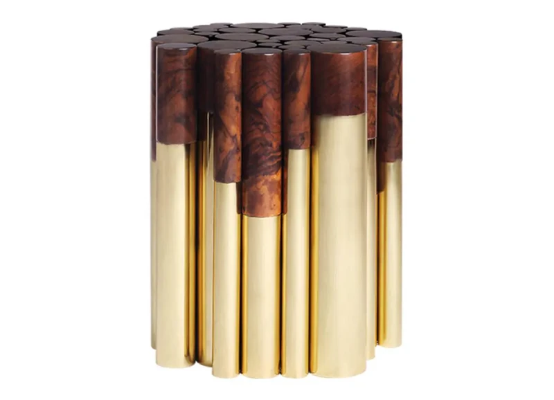 Dzięki tej inspiracji powstał między innymi stolik boczny Wanderlist, klejnotowy element, który został zbudowany z polerowanego mosiądzu z akcentami z fornirem korzenia orzecha włoskiego. Stolik pomocniczy Wanderlust to wyjątkowe dzieło sztuki, które przekaże uczucie chodzenia po egzotycznym lesie.